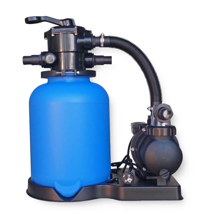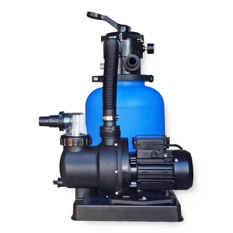 Der Filterkessel ist besonders stabil und langlebig. Mit einem Durchmesser von 300 mm ergibt sich eine Filterfläche von 0,07 m². Der Behälter fasst 20 kg Filtersand mit einer Körnung von 0,4 – 0,8 mm, das ergibt eine sehr gute Filtration bis zu einer Leistung von 3,5 m³/h bei einer Filtrationsgeschwindigkeit von 50 m/h.