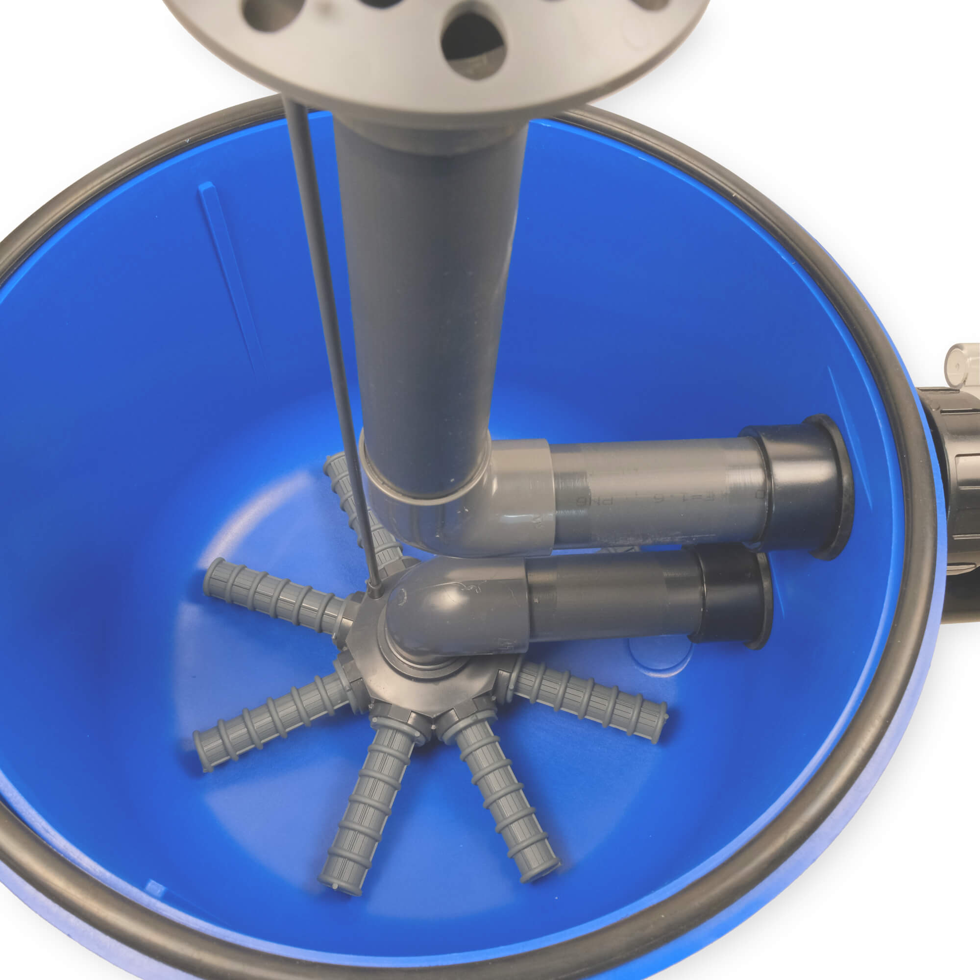der Sandfilter besteht aus glasfaserverstärktem Polypropylen (PP) und weist eine hohe Druckbeständigkeit auf (Betriebsdruck 1,5 bar).